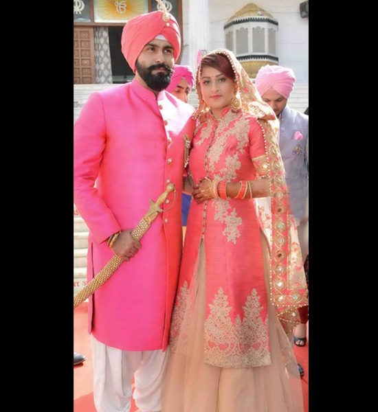 The duo posed outside the gurudwara for the press after the wedding. The two look perfectly synced.