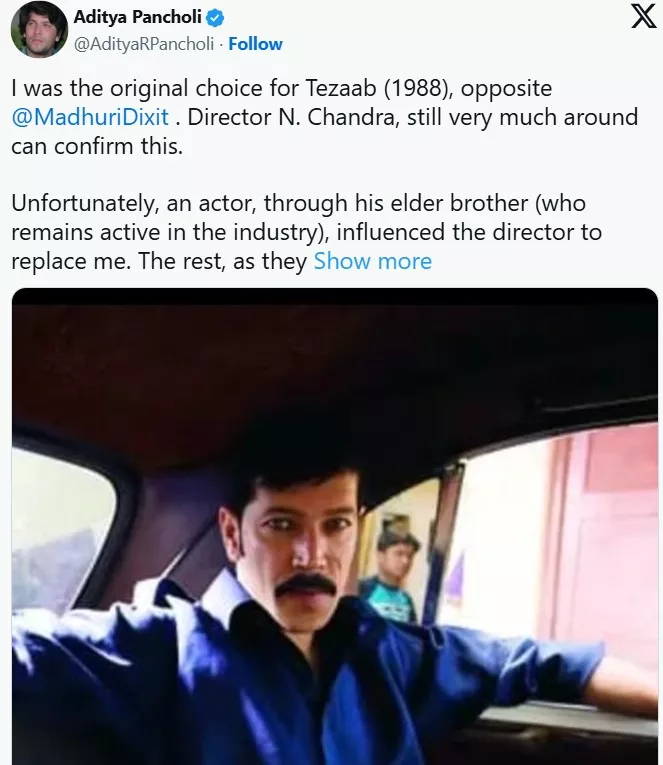 “I was the original choice for Tezaab (1988), opposite @MadhuriDixit. Director N. Chandra, still very much around, can confirm this. Unfortunately, an actor, through his elder brother (who remains active in the industry), influenced the director to replace me. The rest, as they say, is history."