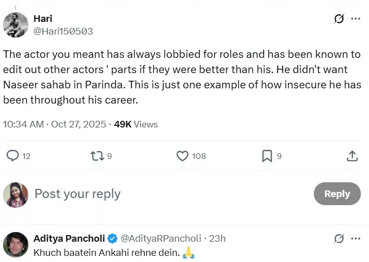 As soon as Aditya Pancholi revealed he was replaced in Tezaab, netizens connected the dots and said it was a direct dig at Anil Kapoor and his elder brother, Boney Kapoor. One of the users mentioned, “The actor you meant has always lobbied for roles and has been known to edit out other actors' parts if they were better than his. He didn't want Naseer sahab in Parinda. This is just one example of how insecure he has been throughout his career.”
