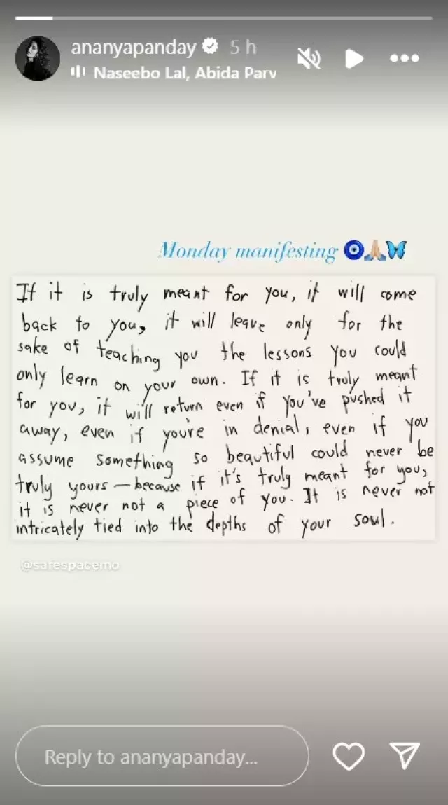 The speculations around Ananya Panday and Aditya Roy Kapur's breakup started hitting the headlines after the actress dropped a cryptic note on her IG handle, wherein it was written that whatever is meant for someone will find its way back to them and the things that are left behind often provides people with a lesson. After Ananya posted this quote, netizens started wondering if everything was all right with the actress' personal life.