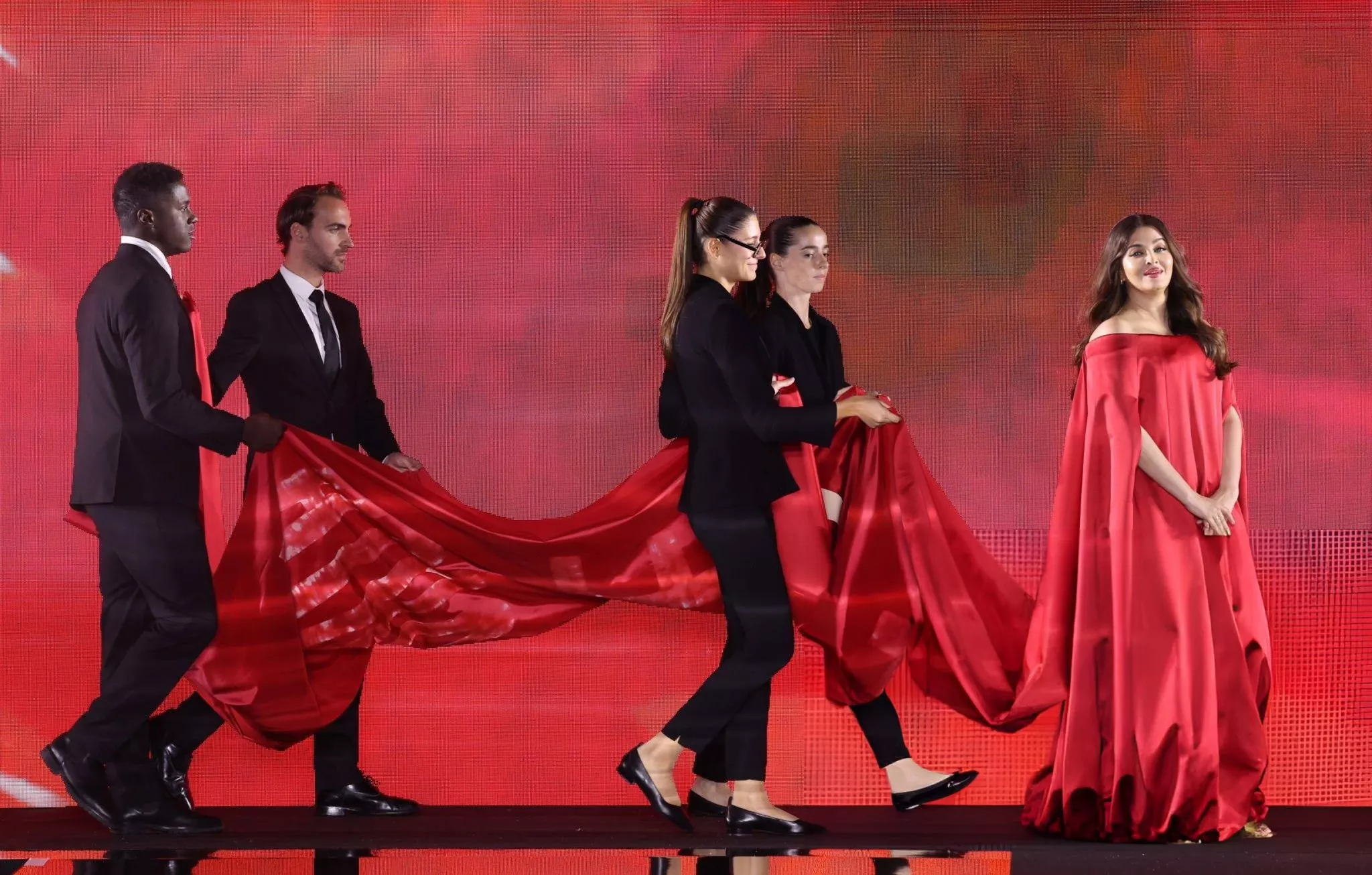 In the video, we could see Aishwarya's assistants carrying the 7-meter-long trail, which was attached to the actress' dress. However, the trail with the 'We Are Worth It' inscription got detached as soon as Aishwarya started walking. The actress didn't let the wardrobe malfunction catch any kind of attention and shone brightly while walking the ramp as the OG L'Oreal girlie.