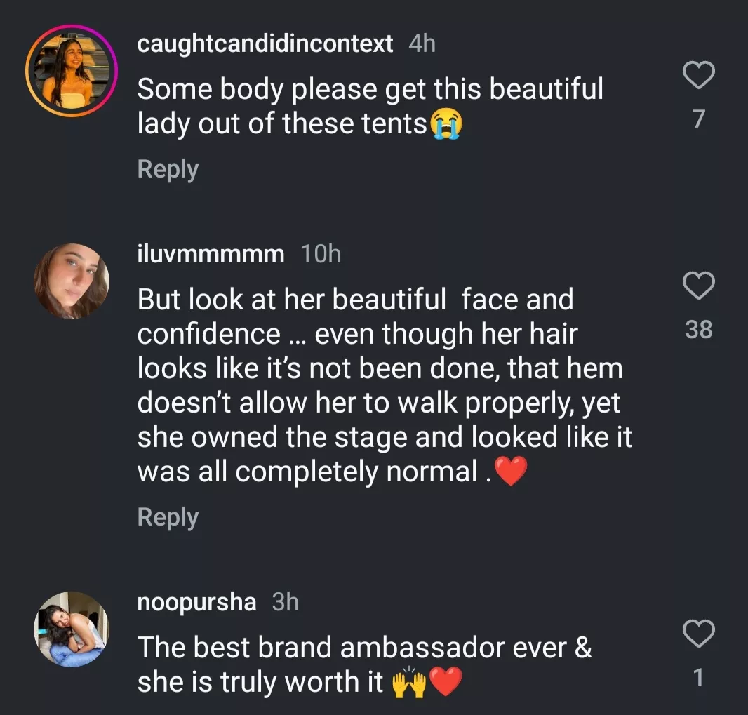 As soon as glimpses of Aishwarya’s ramp walk made their way on social media, netizens started reacting. Some trolled her stylist for giving Aishwarya the most uncomfortable attire, many praised the former Miss World’s confidence on the ramp. One of the comments can be read as, “@dietsabya who else could carry this curtain with so much grace like she did? I’m not even a fan but this women keeps walking up there with just the right amount of confidence.”