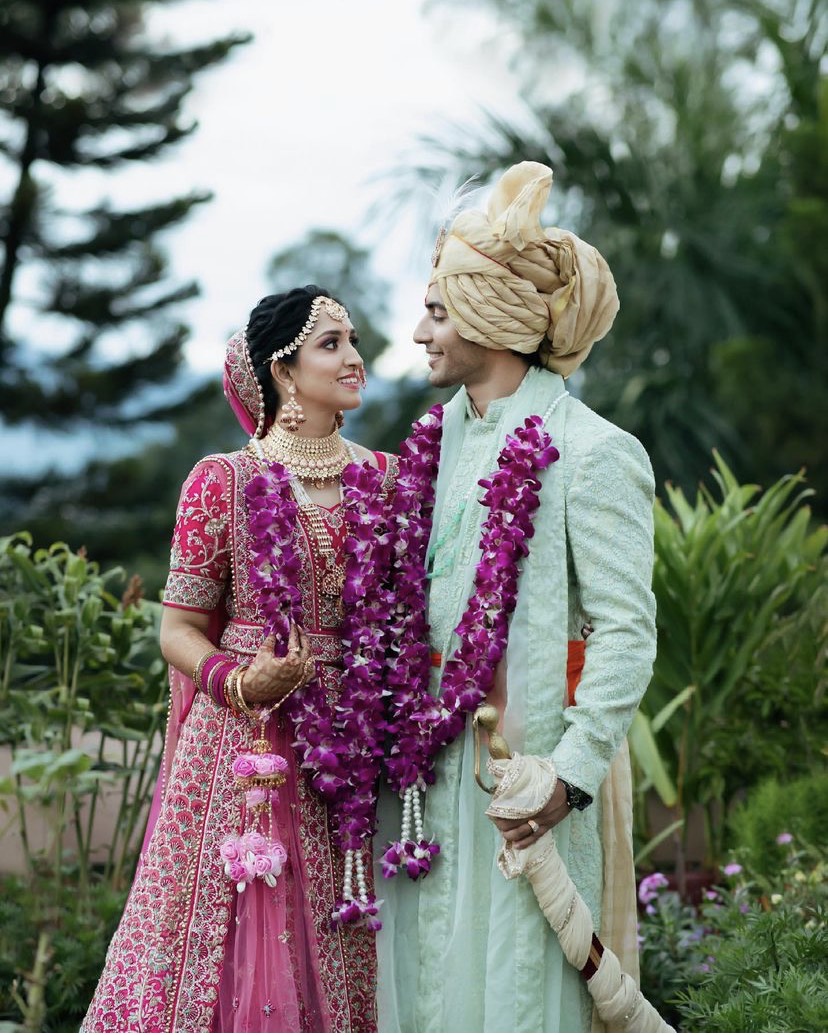 To announce his wedding with Divya Punetha, Akshay Kharodia had shared two pictures from the same on his IG handle with the caption, “Together and forever." For the wedding, while Akshay had opted for a sea-green coloured sherwani, his better half, Divya had looked gorgeous in bright pink lehenga with heavy jewellery.