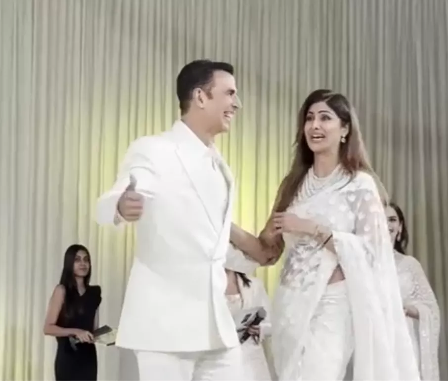 However, what hogged the limelight was Akshay and Shilpa’s unexpected reunion on the stage. Bollywood’s Khiladi Kumar looked suave in a crisp white tuxedo, while Shilpa Shetty stunned in a classic white Manish Malhotra saree, radiating grace and charm.
