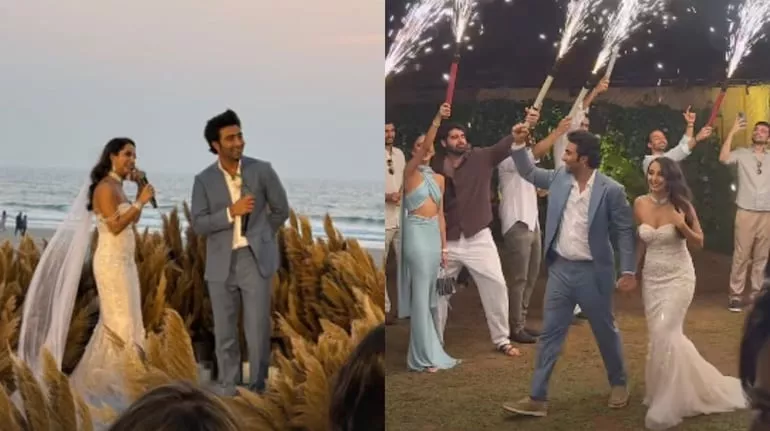 Before their grand wedding celebrations, as per Hindu customs, the couple tied the knot last month at a white wedding ceremony in Goa. It was a close-knit affair held in the presence of their close family members with a bohemian-style decor. Alekha wore a form-fitting lace gown with a strapless sweetheart neckline for the occasion. The gown was adorned with intricate lacework and featured a long, flowly veil. She kept her makeup simple, with her hair open in soft waves.