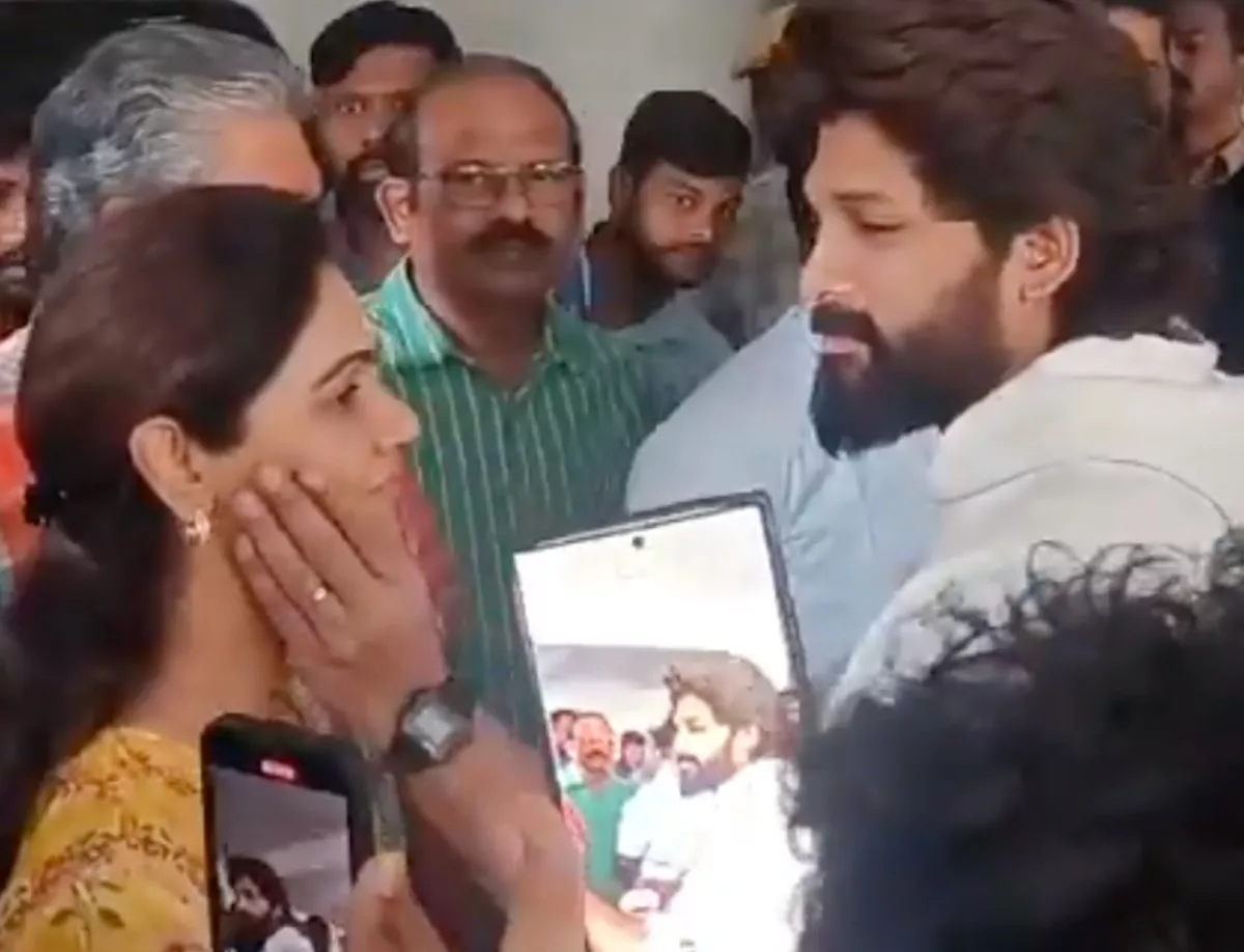 A video of Allu Arjun has been going viral as a couple of police officers surrounded him. In the clip, Allu Arjun was sipping coffee in the parking lot and was conversing with the police head. He looked relaxed and was dressed up in a white-hued hoodie. His wife, Sneha, looked a bit tensed, and Allu Arjun was seen calming her down. In the end, he even kissed her cheeks.