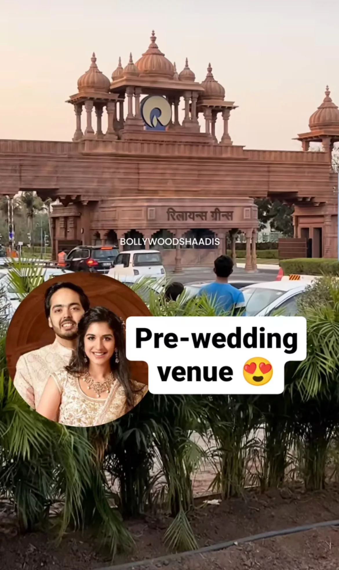 Anant Ambani and Radhika Merchant's pre-wedding festivities will be hosted in Jamnagar. Ahead of the celebrations, some photos and videos of the venue where the star-studded bash will take place have surfaced online. The lavish property, known as Reliance Greens, has witnessed the construction of a massive structure at the entrance, which featured the words ‘Reliance Greens’ in Hindi. We can also see the logo of the Reliance Industries Limited placed on it.