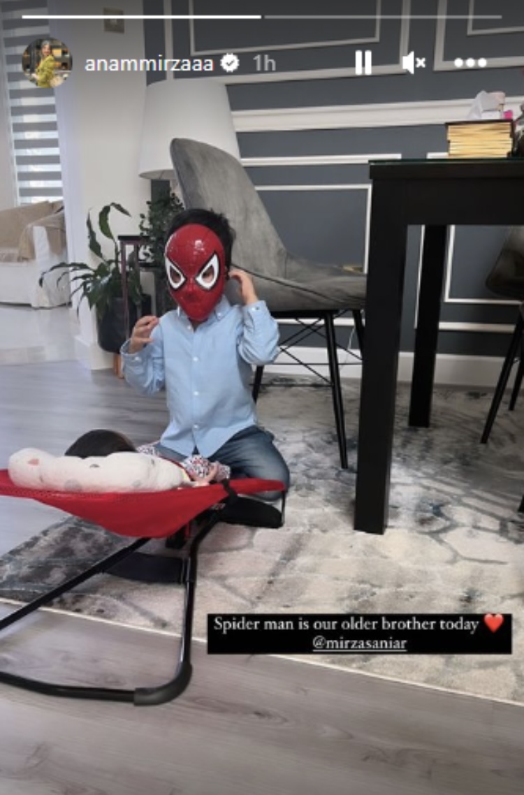 Earlier, on October 29, 2022, Anam had taken to her IG stories and showed us how Izhaan has been acing his brotherly duties. In the picture, Izhaan was seen in a Spider-Man mask, trying to make his newborn sister smile. While Dua was resting in her swing peacefully, it was her older brother who didn’t shy away from entertaining her to the fullest.