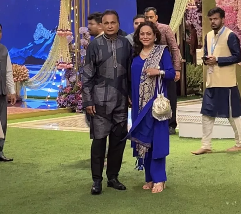 On July 10, 2024, the Ambanis hosted shagun ki mehendi for the bride and the groom. Anil Ambani and Tina Ambani were on time, as they even posed for the paps. Tina looked gorgeous in a royal blue-hued suit, which she teamed with a contrasting printed dupatta. Subtle makeup and no jazzy jewellery completed her look. On the other hand, Anil Ambani was decked up in a blue-hued kurta pyjama.