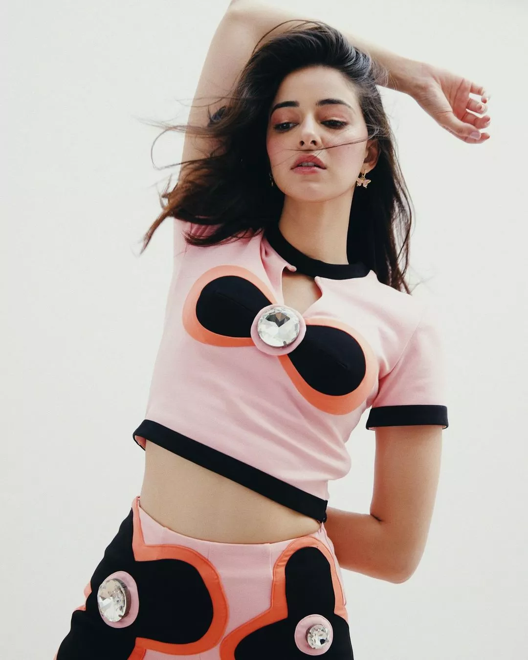 Recently, Ananya graced the launch event of Disney Pixar’s upcoming movie, Inside Out 2, where she lent her voice to the character of teenage ‘Riley’ in the Hindi version. For the occasion, the actress donned a unique co-ord set in the shade of pink. Her ensemble featured a bustier cup T-shirt with a striking design embellished with a large crystal at the centre and flare pants mirroring the same design. Ananya shared her stunning look on Instagram, captioning the post as: