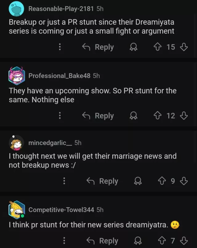 Ankit's decision not to comment further on the issue has made fans more curious about his response. When the news went viral on reddit, users started discussing what could be the possible reason behind their move. Some speculated that they might have gotten involved in a big fight, while others felt it would be a possible publicity stunt by them as their show, Terre Ho Jaayein Hum, is about to be released sometime.