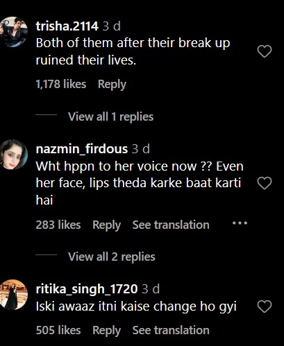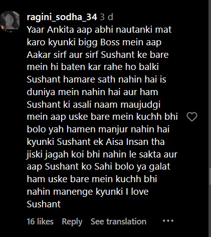 As soon as the video went viral, netizens rushed to the comment section to drop their opinions. Reacting to the video, one user penned a long comment. An excerpt from the comment can be read as, "Yaar Ankita aap abhi nautanki mat karo kyunki bigg Boss mein aap Aakar sirf aur sirf Sushant ke bare mein hi baten kar rahe ho.." Another user took to the comment section and wrote, "Both of them after their break up ruined their lives." Some other users found out the difference between Ankita's earlier voice and look with that of the present. Check out the comments below: