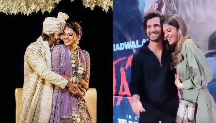 On December 1, 2021, the newly-wedded couple, Aditya Seal and Anushka Ranjan were spotted by the paps as they arrived for the premiere of the movie, Tadap. However, we couldn't take our eyes off the adorable couple as they happily posed for the photos. All of a sudden, the paps started addressing Anushka as 'Bhabhiji', and the actress couldn't stop blushing. She even requested the paps to stop calling her 'Bhabhiji', but they didn't stop.