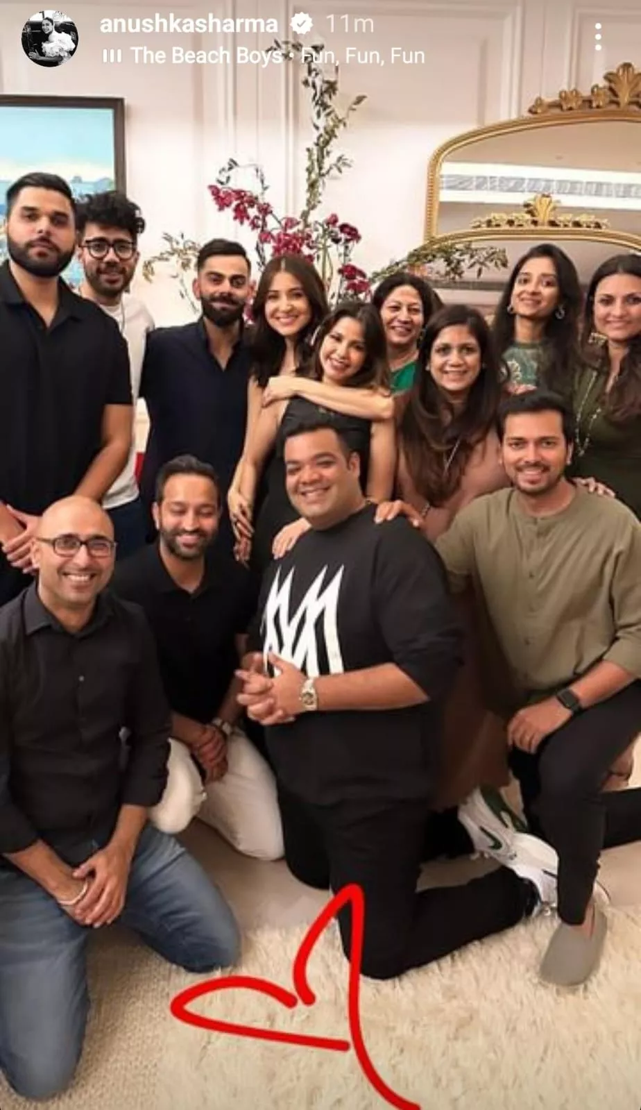 Anushka also took to her IG stories and posted some more inside glimpses from her anniversary bash, featuring her husband and close ones. In the first picture, she shared, the madly-in-love couple was seen cutting a scrumptious chocolate cake. However, it was Virat, who made a funny face while posing for the lens, that made his wife, laugh her heart out. The two of them were seen surrounded by their loved ones who were cheering for the couple. In yet another photo, the lovebirds were seen posing with all their guests, and the happiness on their faces was clearly visible.