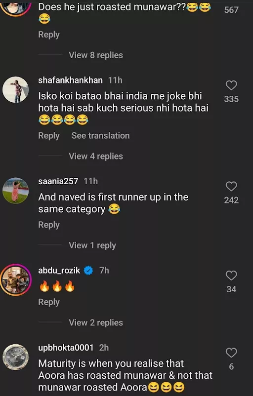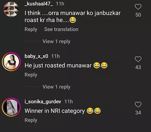 As soon as Aoora came to the party wearing the funky sash and the video of the same was circulated on the web, netizens took to their social media platforms and appreciated his humour. While some thought this was a dig at Munawar and Mannara, others believed that Aoora has taken Munawar's NRI joke a little too seriously.