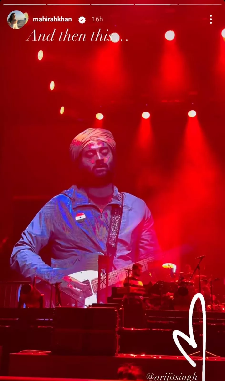 While Arijit was introducing her, the Pakistani actress was seen flashing her brightest smile. She looked gorgeous in a black outfit and even waved at everyone when the camera was focused on her. Moreover, Mahira took to her Instagram stories and shared a sneak peek of Arijit Singh’s concert. She wrote, “And then this…,” atop the video.
