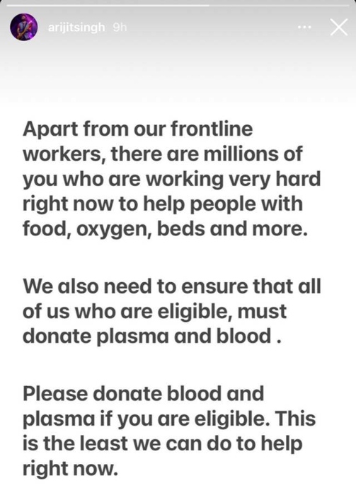 A couple of days ago, Arijit Singh's mother was admitted at the Amri Dhakuria hospital in West Bengal. While Arijit never gave any statement on the same, the singer had shared an Instagram story, urging his followers to donate blood and plasma.