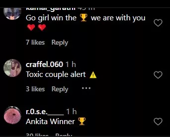 As soon as the video went viral, netizens started rushing to the comment section to drop their opinions. Reacting to the video, users started heaping praise on the couple, while some others tagged the duo as 'overacting'. Reacting to the video, one user wrote, "After Seeing whole season they drama This Look So Cringe." Another user penned, "Lolz this overacting. Send them back in the house for 2 days reality will come out." A third comment can be read as, "Toxic couple alert." Check out the comments below: