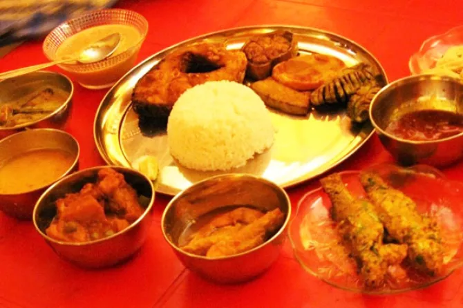 The sakha-pola ceremony differs from family to family. While some families make the bride-to-be wear a white bangle (sakha) and a red bangle (pola) each on both hands, a day prior to the wedding day, some familes have this ritual right after the holud-kota ceremony. The bride and the groom usually fasts for their wedding and the evening is meant for the main wedding rituals.