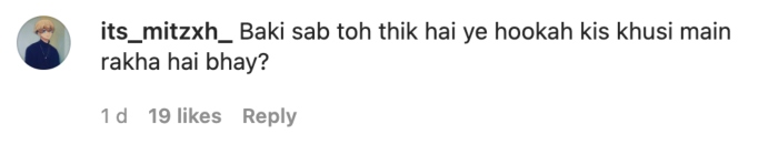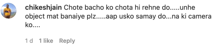 One user instantly questioned Bharti and wrote, "Baki sab toh thik hai ye hookah kis khusi main rakha hai bhay?" Another user questioned why was hookah kept in a baby picture. One user also commented, "Abhi se bigad rahe ho bache ko." One of the user also commented on Bharti's work and wrote, "Chote bacho ko chota hi rehne do.....unhe object mat banaiye plz.....aap usko samay do...na ki camera ko."