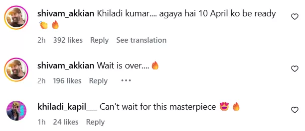 As soon as Akshay Kumar shared the post on social media, fans started chiming in with delight. A user penned, "Can't wait." Another wrote, "Love you paji, waiting for bhoot bangla." A comment read, "Khiladi Kumar.... agaya hai 10 April ko be ready."
