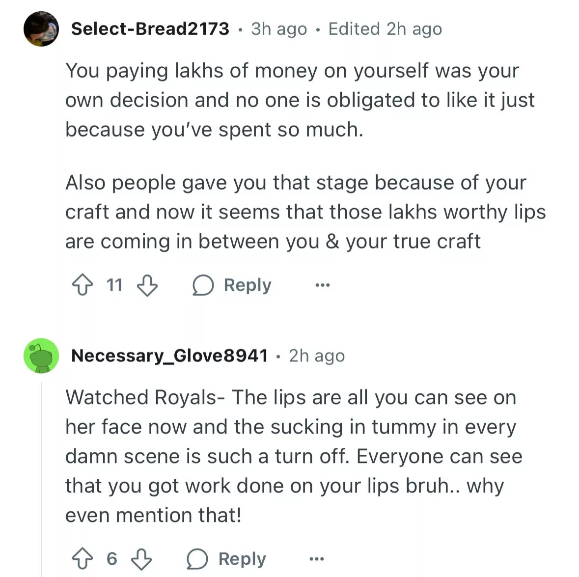 One user commented, "Her face looks so different here. She has had work done on herself, you can see that clearly because now in royals she looks different compared to here, but will never accept that." Another user penned, "You paying lakhs of money on yourself was your own decision and no one is obligated to like it just because you’ve spent so much." Another user wrote, "She never had the look of a classical Indian heroine but had a good run."