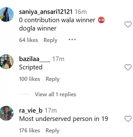 Gaurav looked dapper in sunglasses and a black and white formal look. A netizen seeing Gaurav's video said, "Maker's winner most undeserving winner congratulations Mr. Zabardasti ka winner." A fan calling the winning result unfair wrote, "This is so unfair, Big Boss is playing with the audience. Enn ko content bhi Farhana ki vajah se mila aur usse mila kya logo ki g**li and nothing else. Bigg Boss is very unfair if this is a democracy season, so Farrhana is a great fighter." Other fans said Gaurav played well.