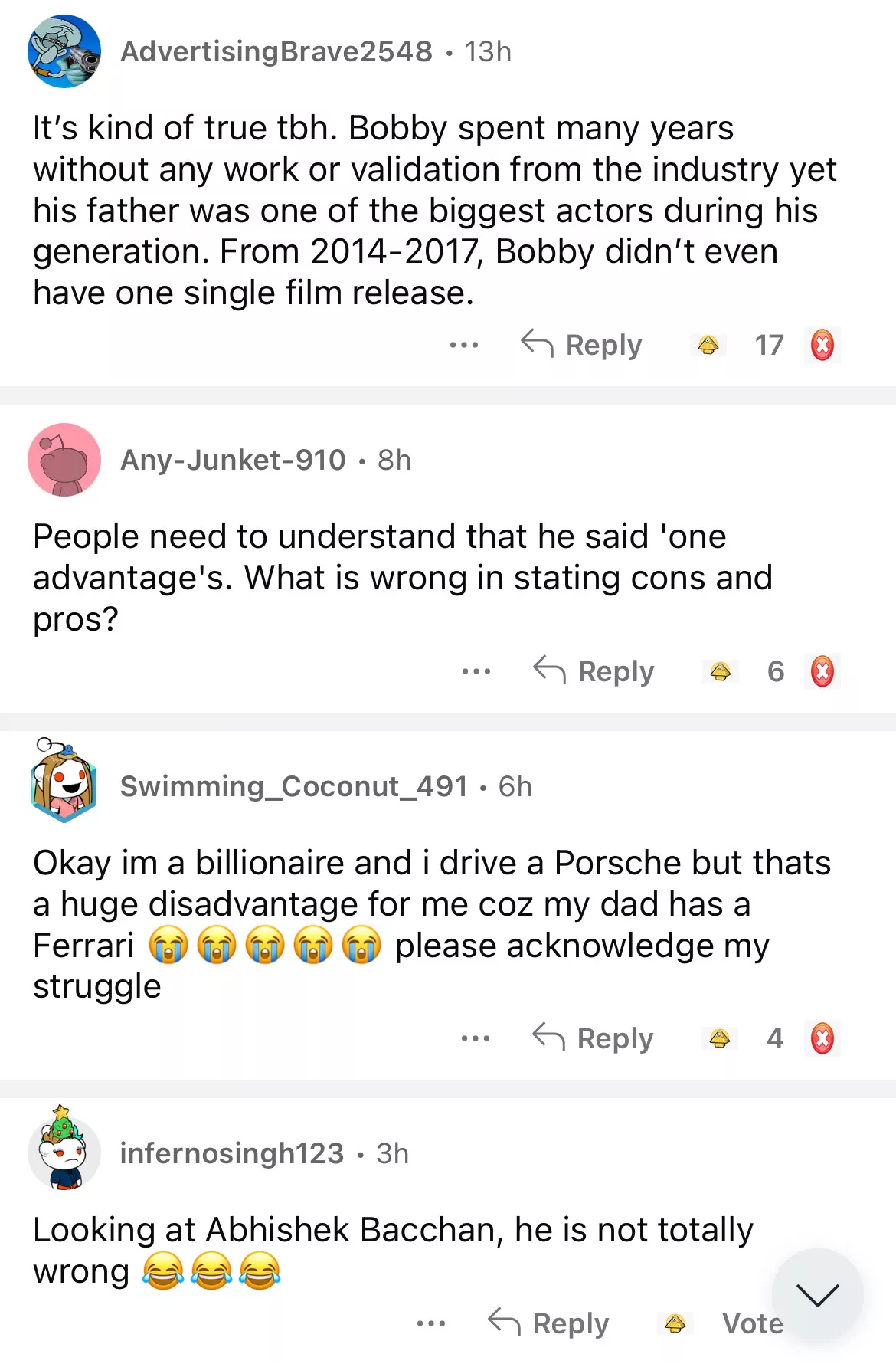 As Bobby Deol's old interview resurfaced on the internet, netizens started expressing their thoughts on the same. They flooded the post's comment section and lauded the actor for his honest opinions. However, a section of social media users also slammed Bobby for not acknowledging his privileges and being thankful to his father, Dharmendra. Check out the comments below: