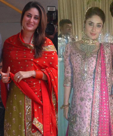 Kareena stayed simple in a red and green salwar kameez on the day of her marriage registration. Minimal makeup and naturally glowing skin did the trick for her. Exchanging her wedding vows in her mother-in-law’s gharara with heavy jewellery and maang-tika brought forth a combination of regal poise and classic charm. A deep burgundy gharara for the reception spelt the old-world charm making her a true royal bride.