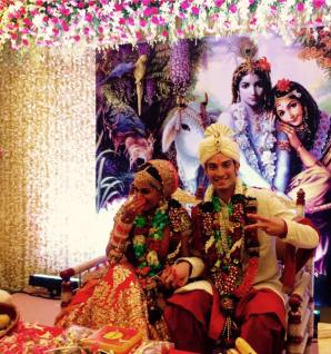 Shweta looked ethereal as a bride, in a red and golden embroidered lehenga. The groom gave her strong competition, as he looked dashing in white and red, perfectly complementing his pretty wife.