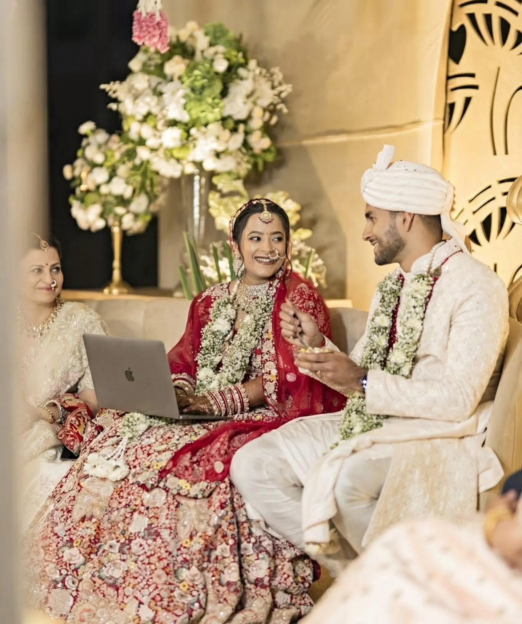 Recently, a December bride's photo went viral. In the picture, the bride was dressed up in a red lehenga with heavy jewellery and a varmala. Her groom sat beside her as she took a work call on her laptop right in the middle of her wedding. The picture might show a sweet moment of the couple's teamwork as life partners, but many criticised the bride, who took up the work right at her own wedding.