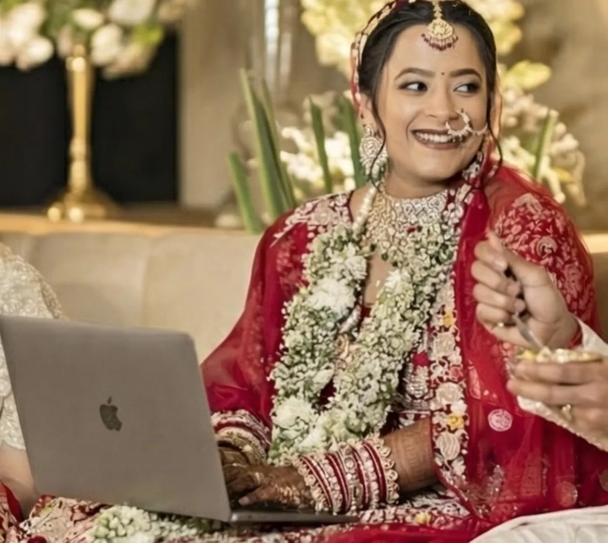 A bride running her own startup was left with no option but to attend a work meeting and fix an issue in the 'mandap' of her own 'shaadi'.