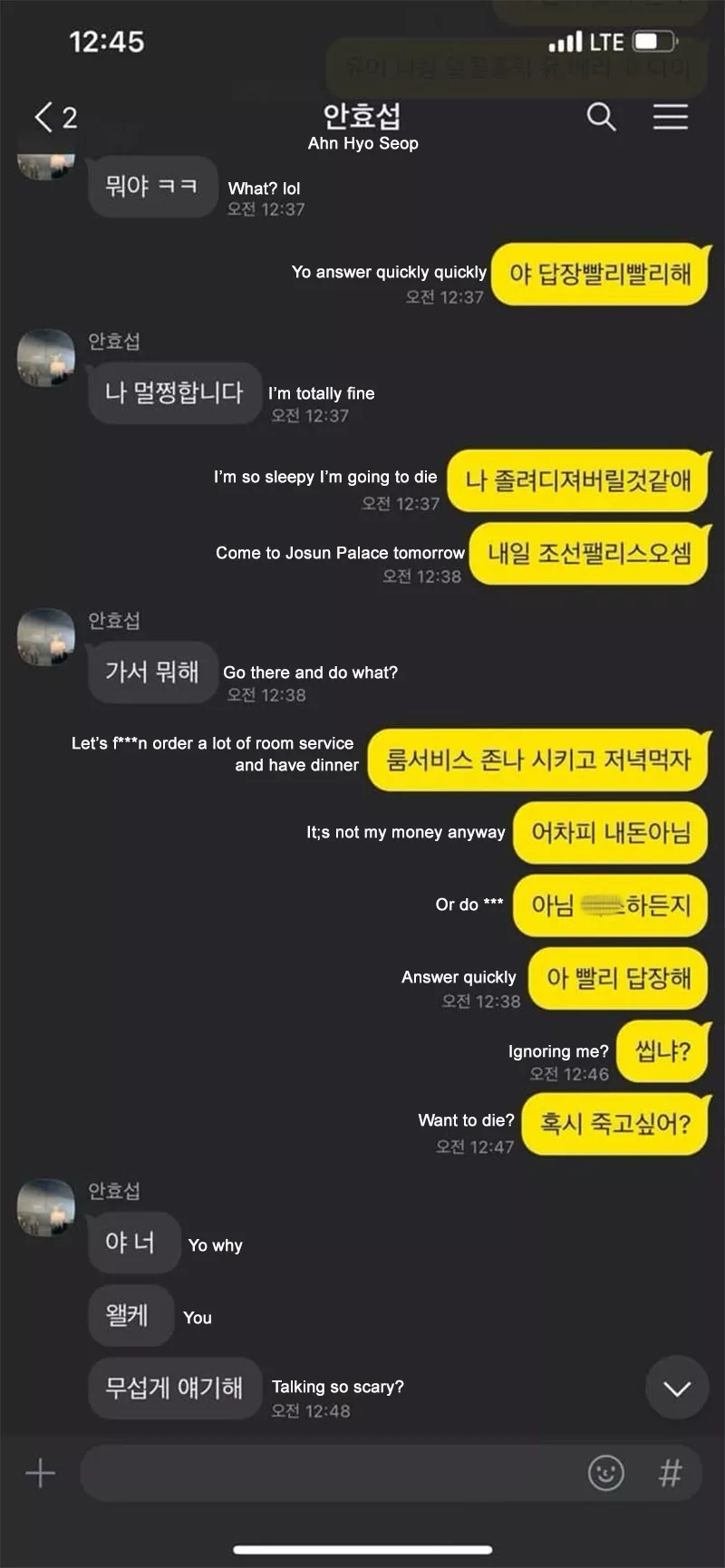 As per a report by Allkpop, Hyo Seop was invited by the notorious former idol trainee, Han Seo Hee, to a luxury hotel in Gangnam to enjoy a night together. A screenshot of their conversation from the South Korean messaging app called Kakaotalk has gone berserk viral, which includes details of their conversation. In the screenshot, Seo Hee asked the Business Proposal actor to come to Josun Palace, where they would order room service and enjoy dinner together. She also suggested that they can get intimate if Ahn Hyo Seop wants it. When the latter took some time to respond to Seo Hee’s texts, she then threatened Ahn Hyo Seop as well.