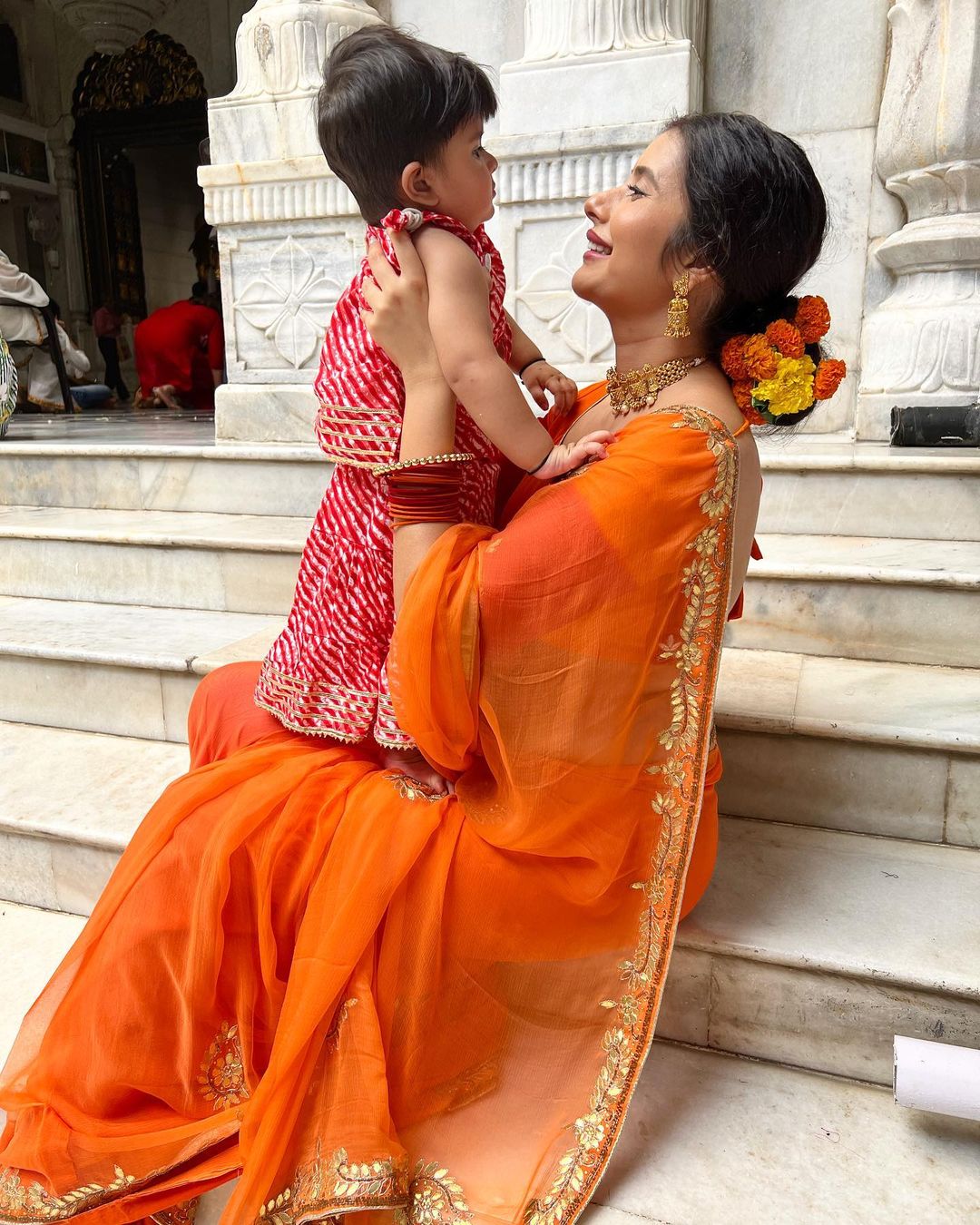 On August 1, 2022, Charu took to her Instagram handle and shared how she celebrated sawan somwar. The day was super special for Charu as it was her daughter's nine-month birthday, and she got her dressed in a pretty leheriya outfit. On the other hand, Charu looked gorgeous as ever in an orange and yellow-toned saree. While her look was on point, it was her sindoor that left her fans confused.