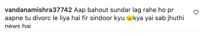 Charu's sindoor amidst separation from Rajeev, left her fans confused and she became a subject of trolling. One user wrote, "Maang me sindoor creates lot of confusion." Another commented, "Aap bahout sundar lag rahe ho pr aapne tu divorc le liya hai fir sindoor kyu." There was another netizen, who bashed Charu for putting sindoor and called her dramebaaz.