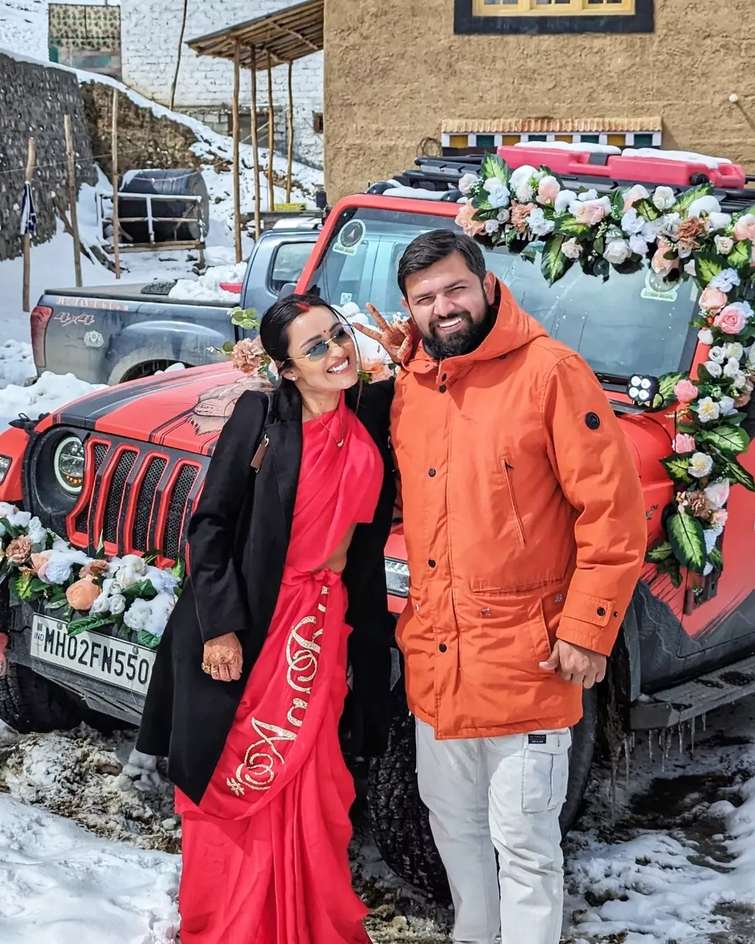 Then, in some other glimpses, we can spot how the influencer bride made a dashing entry to her wedding venue. She was seen driving the four-wheeler, even on the snow-clad roads. Afterwards, while her close ones held the phoolon ki chadar over her head, she walked straight towards the mandap. Then, the couple can be seen merrily exchanging varmalas and performing the other rituals of their wedding.