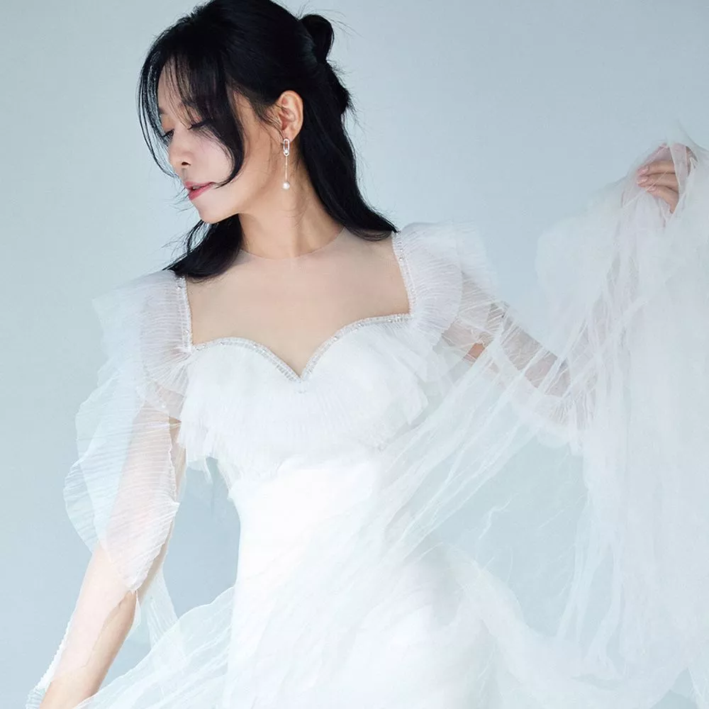 Cha Chung Hwa’s agency shared ethereal pictures of the actress back when she said ‘I do’ to the love of her life. In the statement, she expressed her gratitude for the support and love she received after the announcement of her marriage. In the pictures, the 43-year-old looked like an angel in a white gown, featuring a sweetheart neckline and tulle detailing all over it. She accessorised her look with a simple earring and a half-bun hairdo. In the other glimpses, Cha Chung Hwa was wearing a full-sleeved gown with threadwork all over it, perfectly hugging her slim figure. She wore earrings and tied her hair into a bun to complete her look. Her agency, IOK Company, asked people to give her a lot of support. The statement can be read as: