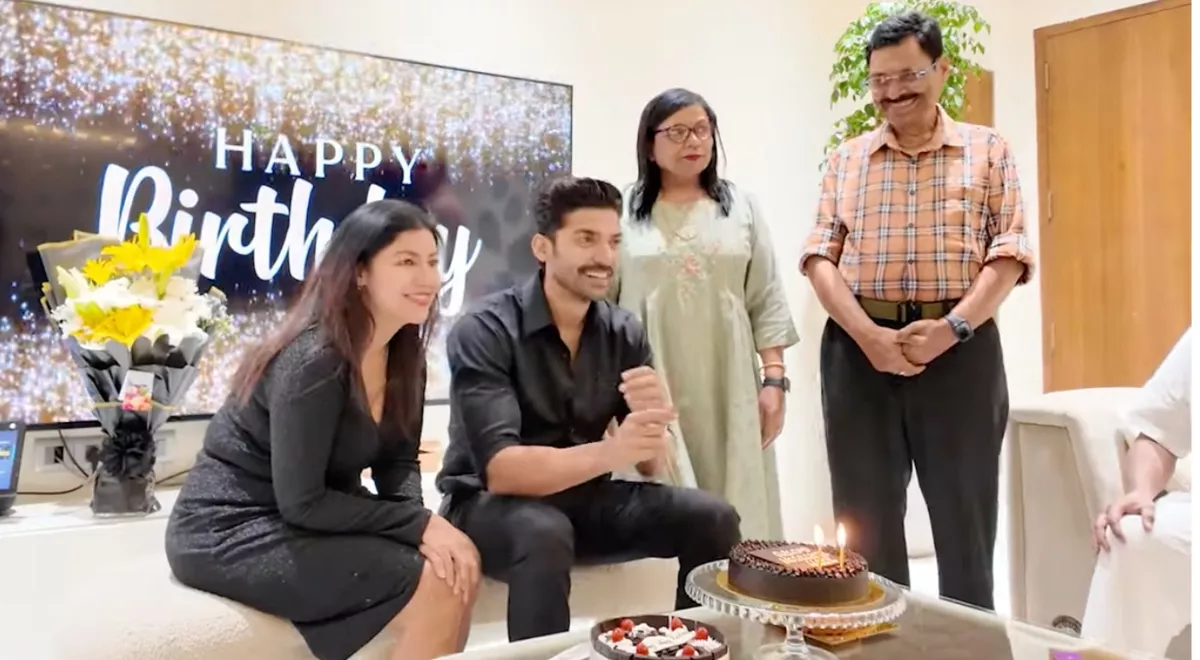 Later in the vlog, we can see Debina giving a hug to Gurmeet as they began another birthday celebration. She called everyone into the frame. Gurmeet's parents stood next to him. While his father was hesitant, his mother kept pulling him closer. Gurmeet asked for a solo picture, but Debina kept sitting with him and teased him that he should click with family. Everyone laughed, but Gurmeet's mother's face had no expression.