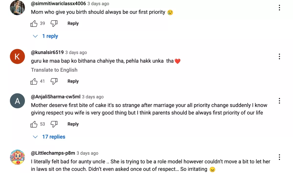 Another one wrote, "She did not even bothered to listen to gurmeet's mother. Please stop treating these people as your idols." Another netizen commented, "guru ke maa bap ko bithana chahiye tha, pehla hakk unka tha."