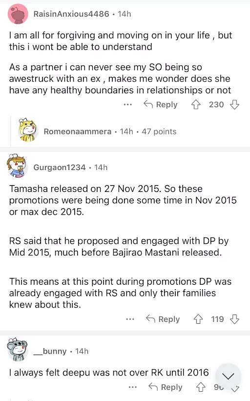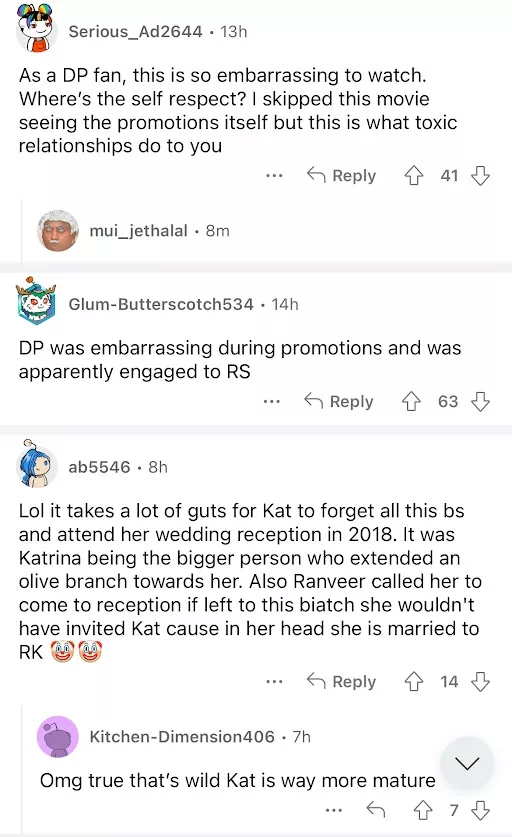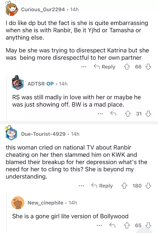 Soon after the video surfaced on social media, netizens were quick to react to the same. While some slammed Deepika for her obsession with Ranbir, others felt bad for her husband, Ranveer Singh. A user penned, "And she was engaged to RS during this time. RS should have ended it like Kat. But he needed that power couple tag." Another commented, "I always felt deepu was not over RK until 2016." A third netizen wrote, "DP was embarrassing during promotions and was apparently engaged to RS".