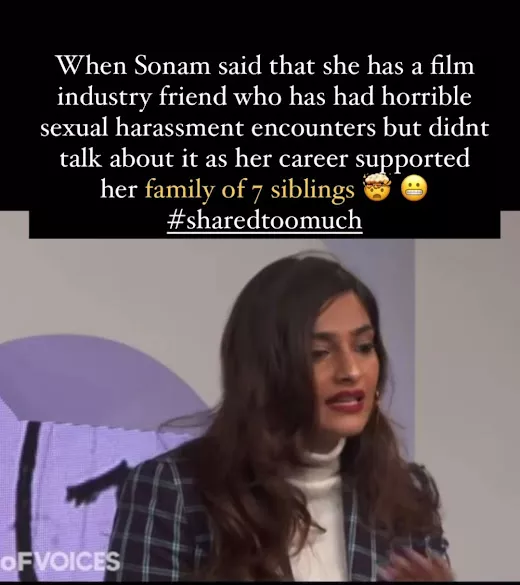 Even though Sonam Kapoor did not name her friends in question. Her reference to the actress with seven siblings led netizens to wonder if she was talking about Katrina Kaif. The Instagram account shared the video with the caption, 'When Sonam said that she has a film industry friend who has had horrible sexual harassment encounters but didn't talk about it as her career supported her family of 7 siblings. #sharedtoomuch.' Soon enough, the comment section was filled with comments calling Sonam out for not naming the actress but giving her away by the sibling reference.