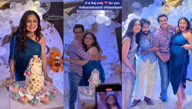 Drashti Dhami also gave us a sneak peek into her lunar-themed baby shower. For the day, the then mom-to-be wore a blue-toned off-shoulder crepe dress. Moreover, it was her pregnancy glow that was unmissable. In some of the glimpses, Niraj and Drashti were seen cutting a two-tiered cake with stars and teddy bears attached to it. Moreover, it was Drashti's nail art that left us swooning. In a photo, we could see Dhashti opting for pink nail polish for the day with the print of a newborn, and it was heart-winning.