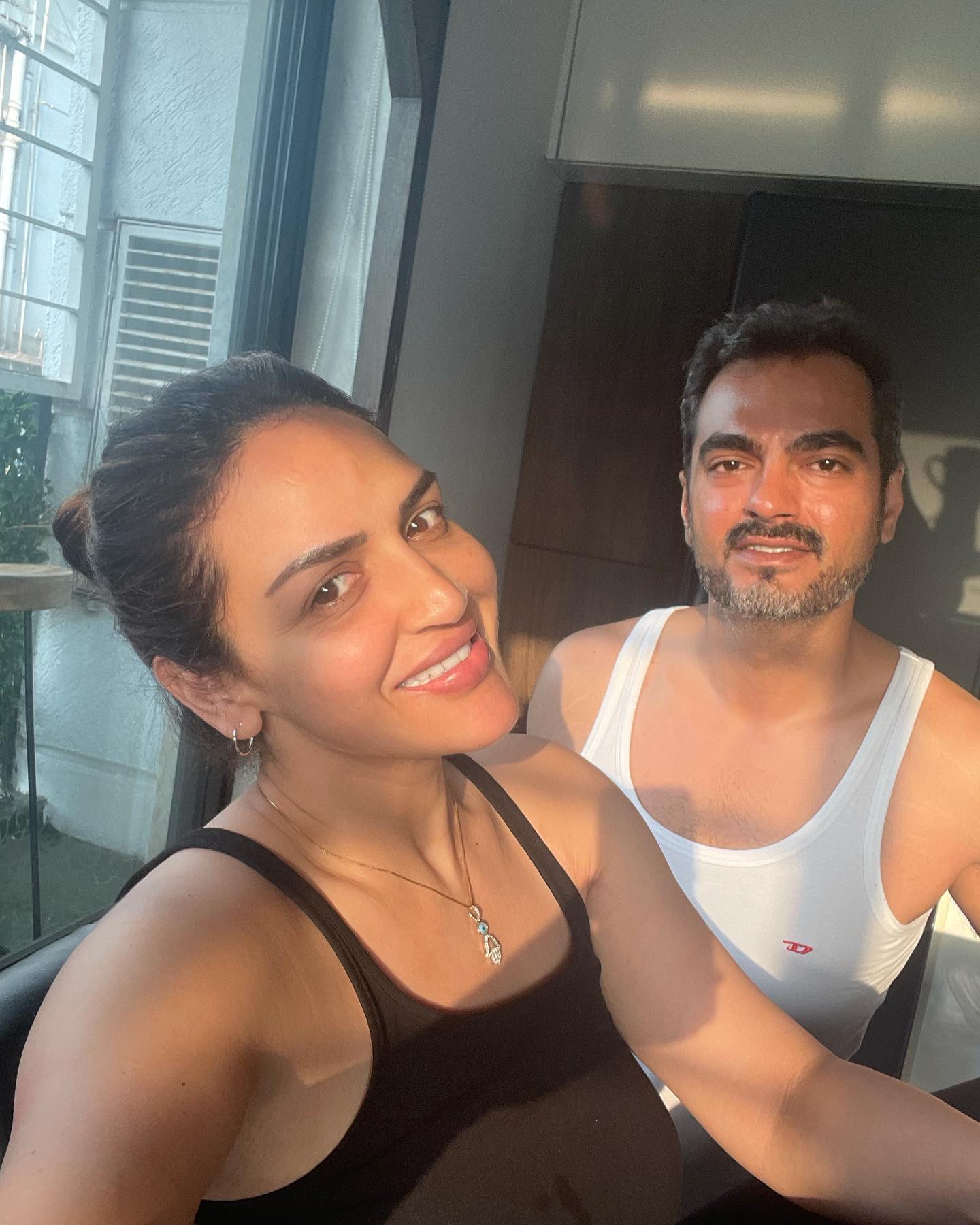 On April 24, 2022, Esha took to her Instagram handle and posted a selfie with her darling hubby, Bharat. In the picture, the couple was seen casually lazing out on a Sunday morning in their PJs. Esha looked pretty in a black ensemble while Bharat looked handsome in a white sleeveless tee. Alongside it, Esha wrote: