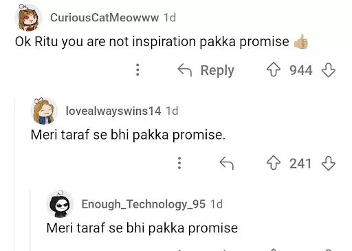 Taking to the post's comment section, an user wrote, "Ok Ritu you are not inspiration pakka promise." While another penned, "She's obsessed with her maid. If she feels so sorry for her maid, maybe she should increase her salary instead of making videos about her." Another netizen called out her problematic behaviour and said, "The moment she opened her mouth and mentioned maid and stuff , I understood she's full of sh-t! Why would you degrade another woman's personal life to uphold yours ??"