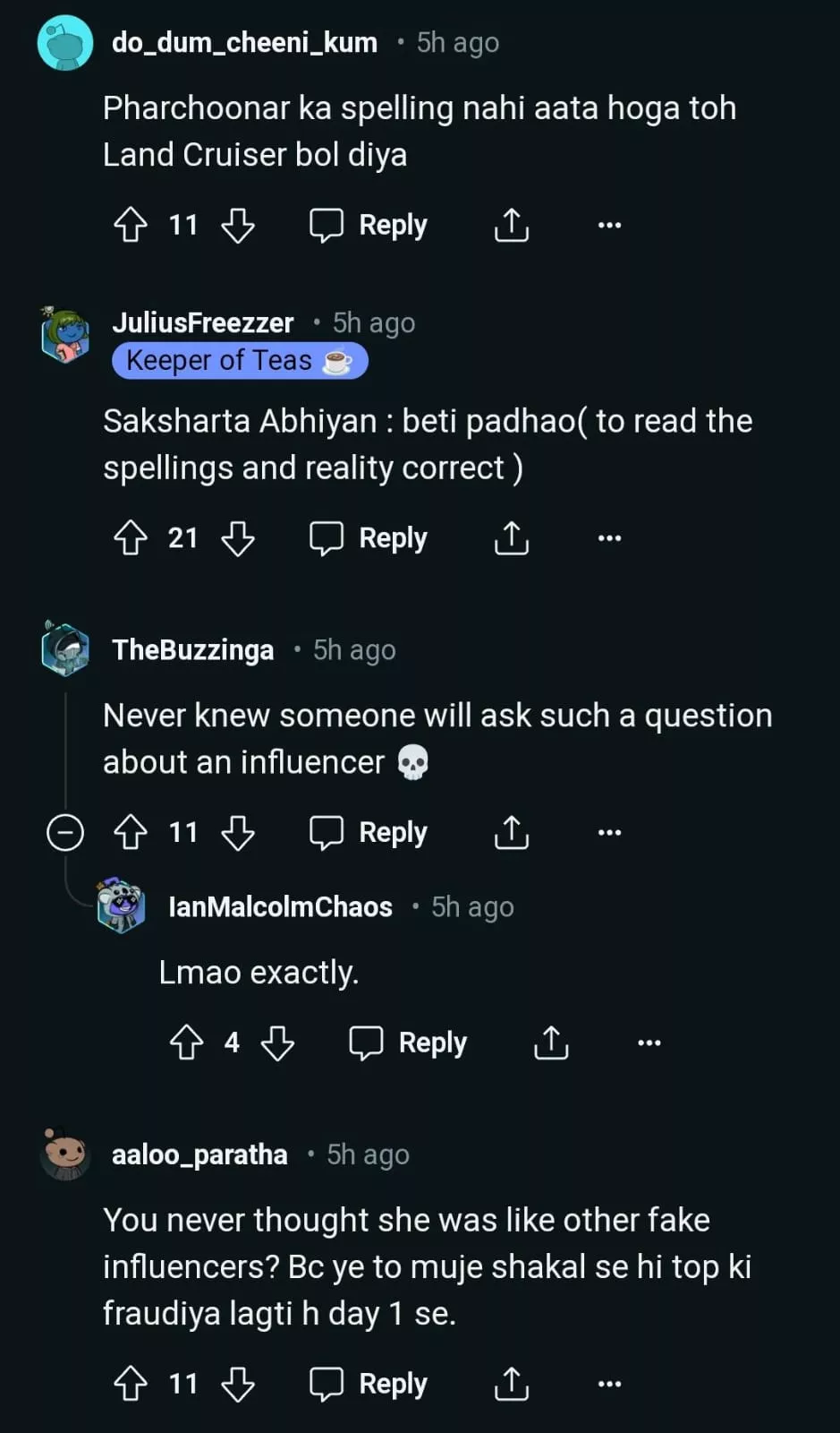 Soon, netizens started reacting to it. While one netizen wrote, "Pharchoonar ka spelling nahi aata hoga toh Land Cruiser bol diya", another mentioned, "In what world Fortuner is embarrassing enough to lie and name a different car? Mujhe bhi yeh problems chahiye life mein." Another netizen penned, "Not embarrassing but too common, maybe she wanted to be on the top by naming a 2cr car."