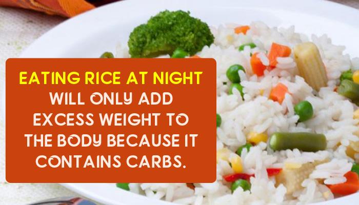 When to avoid: Rice contains carbohydrates, and since our physical activity is almost zero during the night, these carbs will only add excess weight to the body.