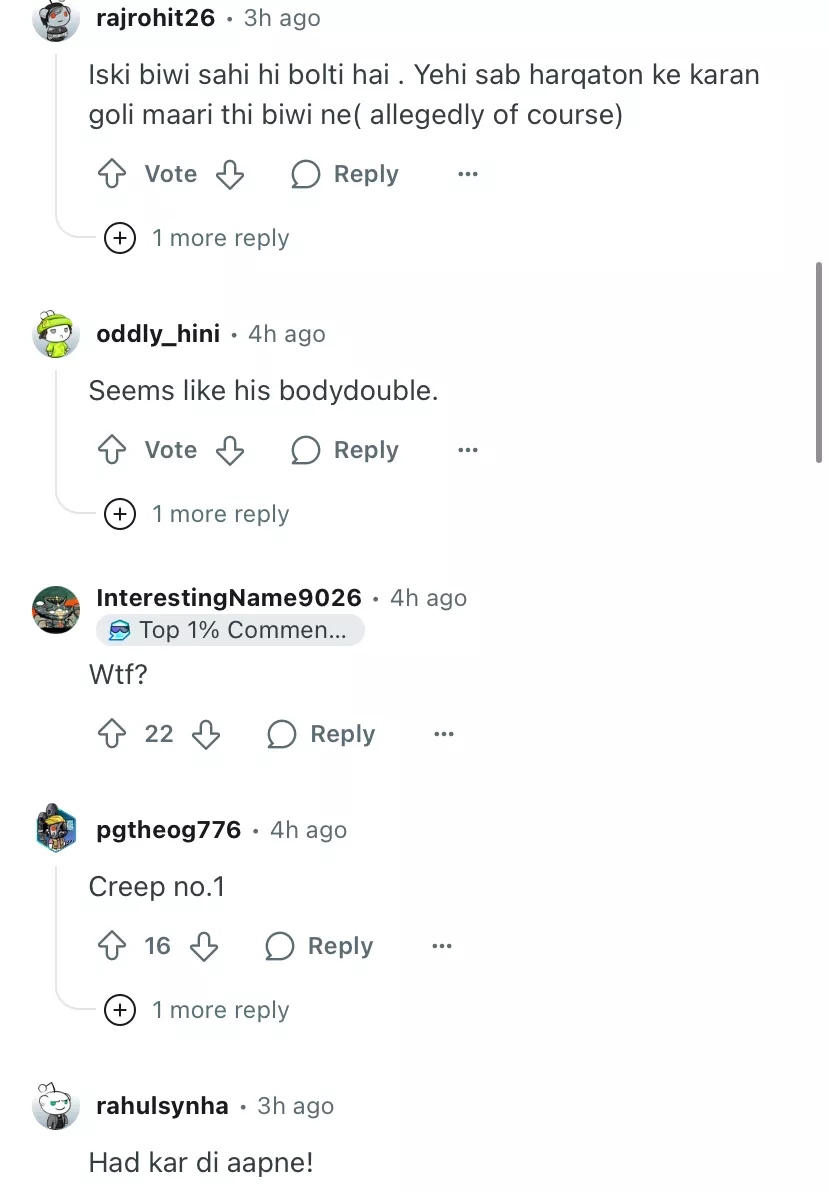 As soon as the video went viral, netizens lashed out at him. One user wrote, "Iski biwi sahi hi bolti hai. Yehi sab harqaton ke karan goli maari thi biwi ne (allegedly of course)." Another pointed out that the man in the video looks like the actor's body double. A third one wrote, "Had kar di aapne!" A fourth one commented, "Omg that is so creepy! Eww."