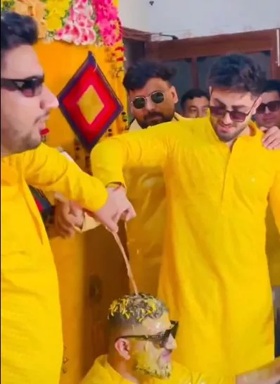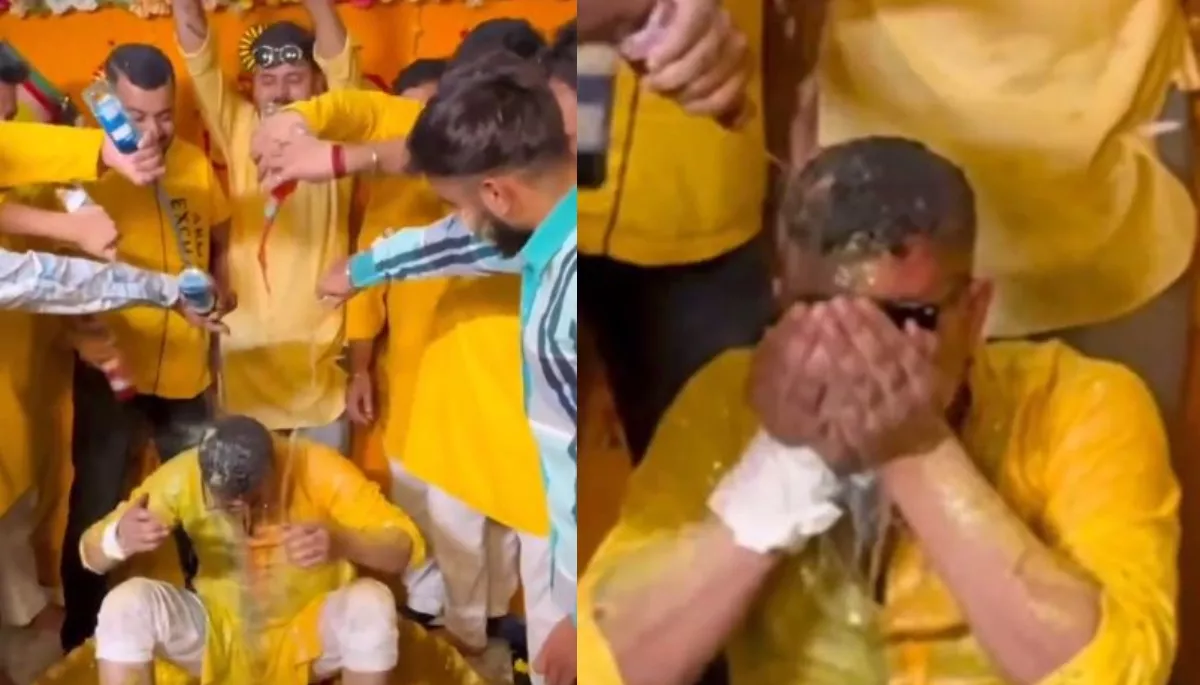 Recently, a video made rounds on social media, wherein the groom was seen dolled up in a yellow-toned kurta and white pyjama. He was seen surrounded by the groomsmen, who were enjoying their hearts out. In the viral video, the groom's face was seen smeared with haldi. However, instead of rose water, gulal, or milk, the groomsmen tried a new twist and showered the groom with different kinds of prohibited alcohol.