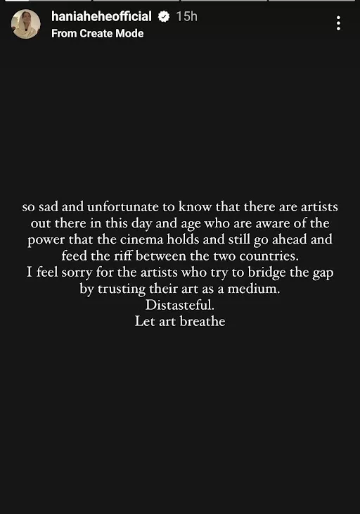 "So sad and unfortunate to know that there are artists out there in this day and age who are aware of the power that the cinema holds and still go ahead and feed the riff between the two countries. I feel sorry for the artists who try to bridge the gap by trusting their art as a medium. Distasteful; let art breathe."