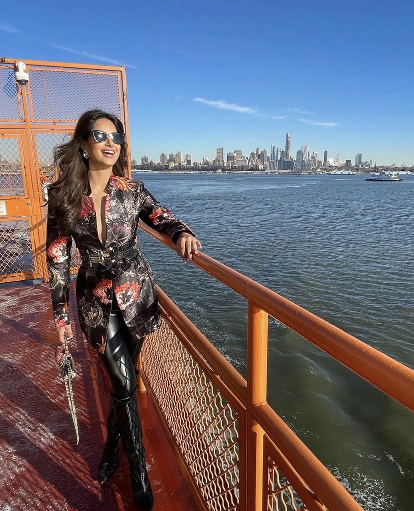 A few hours back, Harnaaz Kaur Sandhu shared a series of pictures on her IG handle as she enjoyed her first ferry trip. In the photos, she can be seen on a ferry as she enjoyed a sunny day in New York while relishing some Thai food at a restaurant. In one of her pictures, the Statue of Liberty and the New York skyline are visible in the backdrop. She captioned the pictures as: